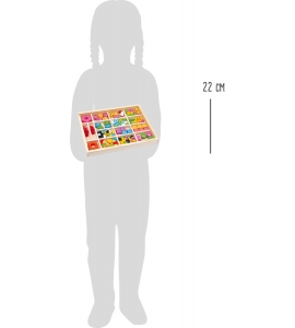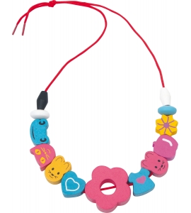 Táto krabica z dreva obsahuje žiarivo zafarbené drevené prvky, s ktorými si deti môžu vytvoriť vlastné retiazky, náramky alebo náhrdelníky! Plastové veko umožňuje zobrazenie obsahu a drží prvky v ich 16 oddeleniach. Vrátanie 2 šnúrok.