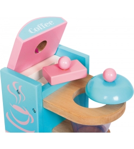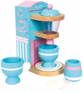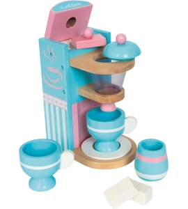 Lakované v krásnych pastelových farbách sú 2 šálky, 1 cukornička a kávovar z rôznych druhov driev. Sú potešením každého hostiteľa malých kávových prestávok! 2 kocky cukru z bieleho lakovaného dreva a 1 odnímateľný "filter". Vrátane príslušenstva