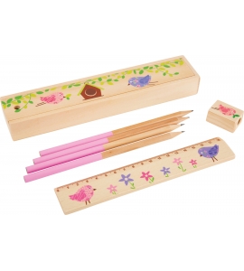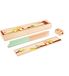 Drevená krabička s rôznymi motívmi pre dievčatá a chlapcov. Vyrobené z kvalitného dreva, toto puzdro na ceruzky uľahčuje učenie. Sada obsahuje štyri ceruzky, strúhatkom a 18 cm pravítko. Pri objednávke do poznámky uveďte motív, o ktorý máte záujem.