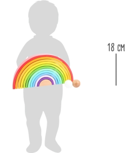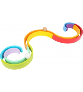 Žiarivo sfarbená hracia doba zaručená! Súčasťou tejto dúhy sú dve drevené guľky zo stabilného dreva a je maľovaná jasnými farbami. Skladané dohromady sú skutočným pútačom pozornosti na poličke, ale skutočná zábava z hrania sa deje pri mnohých možnostiach hrania. Po zostavení v rade sa jednotlivé oblúky môžu stať napríklad dlhým tunelom pre dve zahrnuté gule. Dúhu je navyše možné triediť a skladať na seba alebo sa z nej dá vyrobiť hojdačka pre plyšové zvieratká. Je všestranný a podporuje tvorivosť po celé detstvo. Ktorá farba je najkrajšia?