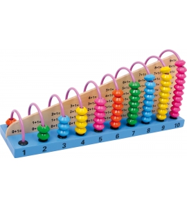 Na 10 oblúkoch sa môžu pohybovať farebné drevené korálky ako vizuálna pomôcka pri počítaní. 55 doplnkových úloh na jednej strane a 55 úkonov na odčítanie na druhej strane drevenej základne sú zobrazené a môžu byť rýchlo vyriešené pomocou drevených korálkov! Výzvou pre všetkých malých matematikov!
