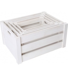 Tieto báječne spracované drevené boxy v bielej farbe sú k dispozícii v štyroch rôznych veľkostiach. Sú jemne leštené a na krátkej strane majú zárez. Poslúžia naozaj skvele ako dekorácia, na skladovanie a transport.