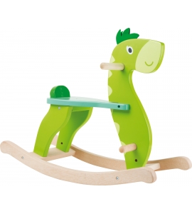 Iný spôsob, ako prechádzať krajinou - nie na hojdajúcom koníkovi z dreva, ale na hojdajúcom dinosaurovi! Tento zelený spoločník je vyrobený z veľmi robustného dreva a má atraktívne pastelové farby. Deti bezpečne sedia na "sedle", pretože sú chránené dreveným rámom, ktorého sa môžu držať. Zelené dinosaurské hroty na hlave sú vyrobené z plsti.