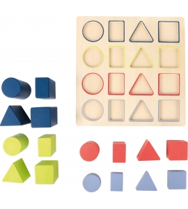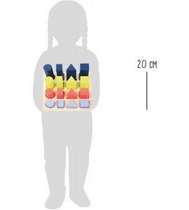 puzzle s efektom učenia! Táto skladačka zo 100% certifikovaného dreva FSC® ponúka ľahký úvod do skúseností s geometrickými tvarmi. Pomáha tiež trénovať rozpoznávanie farieb. Farebné kódovanie pomáha deťom rozpoznať výšku stavebných prvkov a umiestniť ich do zodpovedajúcej čiary. Učí prvé pochopenie veličín a zlomkov. Tu je predprogramovaná zábava pri učení.