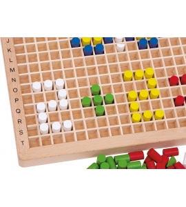 Navrhujte veľa kreatívnych vzorov, obrázkov a slov v rôznych farbách vložením malých kolíkov do rôznych štvorcov drevenej škatule.