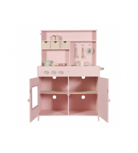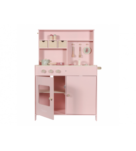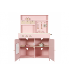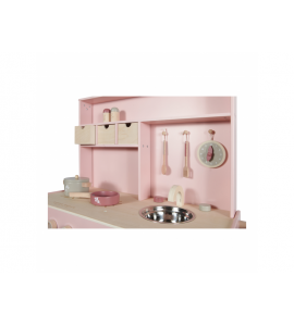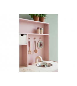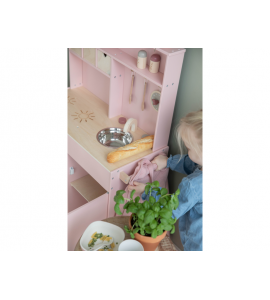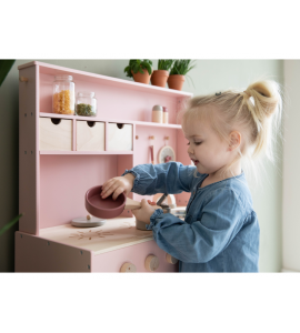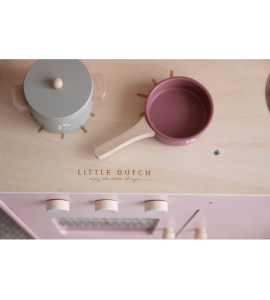 Prišiel čas zažiariť! Malí kuchári teraz môžu variť svoje delikatesy v plne vybavenej kuchynke od Little Dutch. Kuchynka je vyrobená z dreva a skladá sa z rúry s dvierkami, dvoch varných dosiek, nechýba odkladacia polica, drez s kohútikom či hodinky. Pri varení deťom poslúži aj riad, ktorý je súčasťou vybavenia. Tešiť sa môžu na hrniec, panvicu, varešky, soľničku aj koreničku.