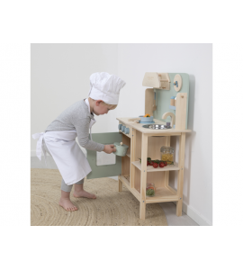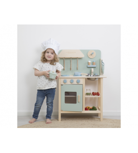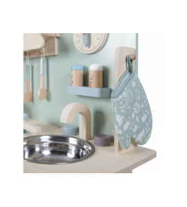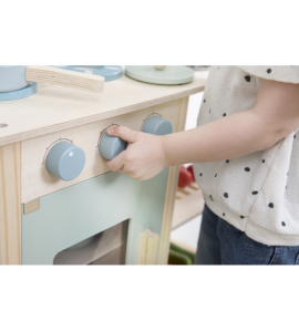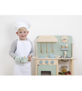 Váš malý šéfkuchár môže variť, piecť a vyprážať v tejto kompletnej drevenej kuchyni Little Dutch. Kuchynka obsahuje hodiny, riad (hrniec, panvica, koreničky, rukavica, tri varechy), drez, otváraciu rúru s magnetkou, kohútik. Kuchynka je dodávaná s extra nástavcami (6 cm), ktoré možno pripevniť pod nohy kuchyne, takže váš malý šéfkuchár si môže vychutnať potešenie z varenia mnoho rokov.