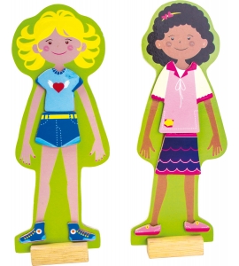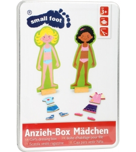 Hračka ponúka veľa kombinácií, všetko oblečenie je vyrobené z ľahkého dreva a prichádzajú v atraktívnej kovovej krabici. Všetko je úhľadne zabalené a vhodné aj na cesty. Šaty a bábika sú pokryté magnetickou fóliou, ktorá zaistí dokonalé uchytenie!