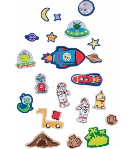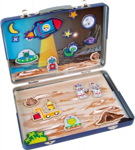 Všetci sme chceli pristáť na Mesiaci! S touto magnetickou hračkou si môžete aspoň vytvoriť svoj vlastný mesiac. Astronauti, cudzinci, planéty a rakety tvoria túto hračku. Magnetické kazety môžu byť jednoducho pripevnené k šablónam v skrinke bez skĺznutia. Môžu byť použité na vytvorenie vlastných individuálnych návrhov.