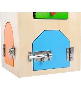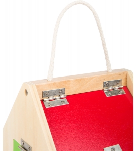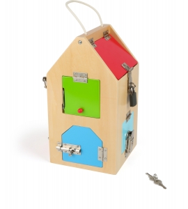 Vyrobený podľa najvyšších štandardov, tento drevený dom trénuje každodenné motorické zručnosti s visiacimi zámkami, pákami, pántmi a dverovým reťazcom. Je vyrobený z materiálu odolného proti roztrhnutiu, ktorý mu umožňuje odolávať väčšiemu namáhaniu. Je skladný, ľahko prepravovateľný a zaisťuje skvelú zábavu.