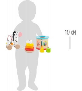 Motorické zručnosti pre malých prieskumníkov! Táto rôznorodá hra je obohatením detskej izby. Stohovateľná veža s vlnovou funkciou vyžaduje obratnosť a sústredenie, učenie aj motorických zručností. Zebru na šnúrke môžete ťahať a pritom vydáva "hrkotajúci" zvuk, zábavný pre každé dieťa. Krásny darček pre malé batoľatá.