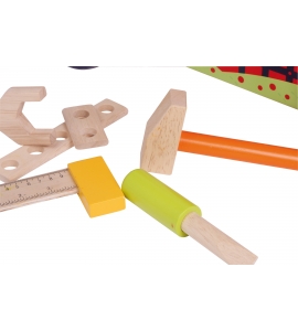 Tento motorický vozík je určený na zlepšenie motorických zručností a vytváranie mnohých hodín zábavy. Vozík je vyrobený z MDF, masívneho dreva a prírodného bukového dreva. Tvary je možné triediť alebo prvé detské opravy je možné vykonať pomocou dodaných nástrojov. Kolesá s hladkým chodom sú vybavené malými gumovými pneumatikami, ktoré pomáhajú udržiavať nízku hladinu hluku. Pod sedadlom je úložné miesto, kde je možné uložiť všetky tvary a nástroje.