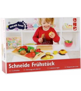 Vynikajúca raňajky z dreva. Vďaka vloženým nožom je možné raňajky rozdeliť na jednotlivé diely a znova ich dať dohromady vďaka suchým zipsom.