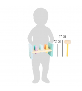 Kladivo môže byť také štýlové! Teraz môžu deti zmerať svoju silu kladivom na drevené palice, ktoré sú držané v jemných pastelových farbách, pomocou dreveného kladiva. Gumené povlaky v otvoroch na príklepy držia póly na svojom mieste. Klasická hra, ktorá trénuje koordináciu ruky a očí a motoriku. Farby a roztomilé zvieracie motívy, ktoré sú priateľské k deťom, robia z kladivovej lavice elegantný dekoratívny prvok v detskej izbe. Keď sú všetky valce dole, lavičku je možné jednoducho prevrátiť a zábava začína odznova.