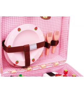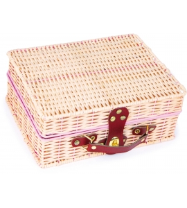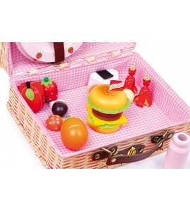 V tomto košíku z prútia s rukoväťou na prenášanie a uvoľňovacími spojovacími prvkami nájdete veľa farebne lakovaných lahôdok z dreva na krátky obed. Suché zipsy a upevňovacie prvky v hravom spôsobe trénujú motorické zručnosti drobných rúk. Pozostáva z 24 ks.