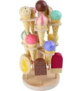 Tento stojan na zmrzlinu naozaj nenecháva žiadne priania nevyplnené. Drevené zmrzlinové kornútky sa dajú umiestniť do pohyblivých otvorov a ľadové kopčeky sa dajú umiestniť do vopred vyvŕtaných otvorov. Chutné, a farebné.