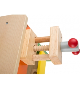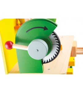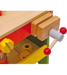 Vybavený odnímateľným vŕtacím strojom a pripevnenou pílou, táto pracovná lavica vrátane zveráku je perfektnou pracovnou stanicou pre malých remeselníkov! Pevná konštrukcia rôznych drevených typov, farebne namaľovaná a jasne lakovaná. Špeciálna hračkárska hračka s kladivom, skrutkovačom, kľúčom a niekoľkými skrutkami, maticami a perforovanými plechmi!