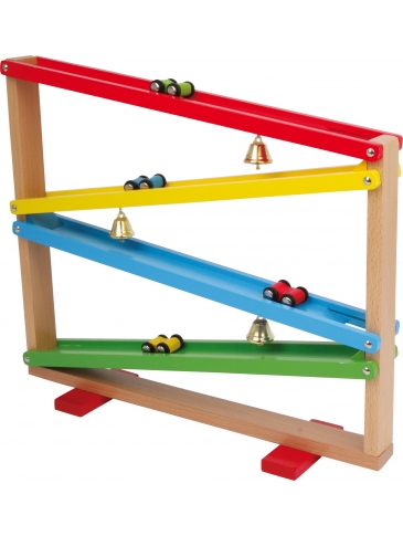 Pretekanie na 4 úrovniach, 4 autá (cca 3 x 3 x 1,5 cm) nechajú zvončeky veselo zazvoniť! Rám je vyrobený z jemného hotového bukového dreva a ...