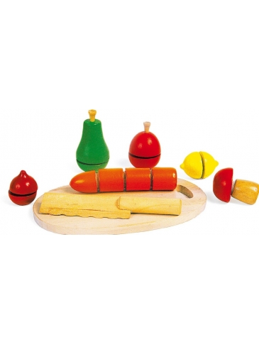 V tomto stabilnom kartóne je 11 kusov farebných drevených druhov ovocia. Krabica je vystlaná umelou trávou. Skvelý doplnok pre reálne hranie na...