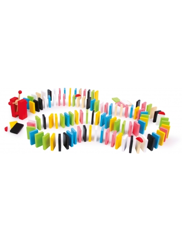 Šikovne stavajte stale nové dráhy z nalakovaných drevených častí a potom kolieskom uveďte kamene do postupného pádu. O úžasné efekty pri rally...