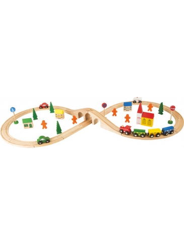 Štartovacia sada drevených železničných súprav. Správna dráha pre deti, ktoré práve objavili zábavu vo vlakoch a železniciach.
