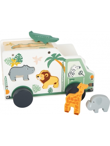Tvarovo ladená hra a drevené autíčko spolu! S touto drevenou tvarovo ladenou hrou v populárnom safari vzhľade sa žirafa, hroch, lev a ich...
