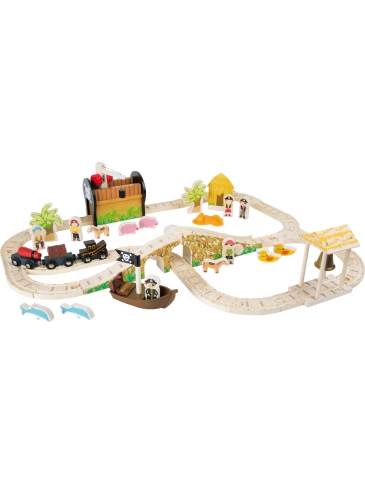 Tu šesť pirátov vládne nad svojou vlastnou drevenou železnicou na svojom ostrove. Drevené koľajnice sú dokonca vybavené mostom a zvonom. Drevený...