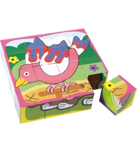 16 kociek (4,5 x 4,5 cm) so šiestimi rôznymi motívmi poskytuje zábavu pre našich malých logických priateľov na spoznávanie tvarov a farieb. Tu s pomocou drevených kociek a povrchov, navrhnutých špeciálne pre deti, ich zručnosti sa budú rozvíjať.