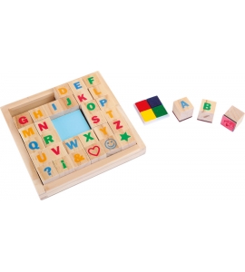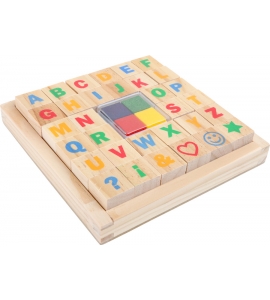 Kompletná abeceda a šesť ďalších znakov možno vytlačiť na akýkoľvek papier alebo lepenku a inšpirovať sa k veľkým umeleckým dielam. Najmä deti predškolského veku môžu získať prvé skúsenosti v písomnej forme. Toto trénuje kreativitu a koncentráciu. Vrátane štyroch atramentových podložiek v modrej, zelenej, žltej a červenej farbe.