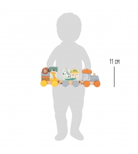 Dajte to dokopy a choďte zo stanice! Tento drevený vláčik v trendy farbách sa chystá na veľký výlet po škôlke, až keď nalodia slon, žirafa, zebra a ich priatelia! Bohato podrobný vláčik, ktorý je zároveň tvarovo prispôsobenou a skladateľskou hrou, ponúka deťom možnosť stavať podľa vlastných predstáv. Vkladateľné bloky sa dajú použiť aj samostatne ako stavebné bloky. Ďalšia zastávka: Safari! Hra a zloženie jednotlivých vkladateľných prvkov spolu trénuje aj motoriku. Pre dlhotrvajúcu a rozmanitú zábavu pri hraní v detskej izbe!