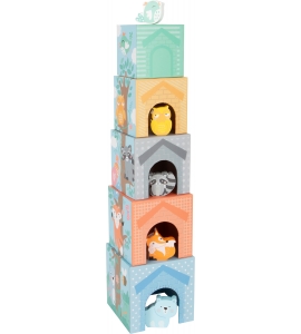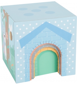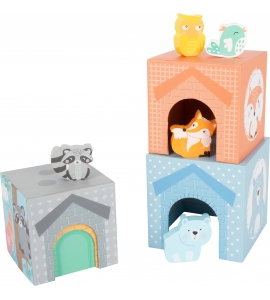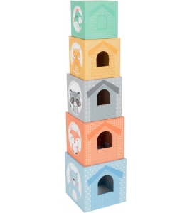 Skladanie zábavy v trendy farbách! Všetkých päť stohovacích kociek pastelovej farby a zodpovedajúce drevené figúrky zvierat už len čakajú na naloženie a pridelenie. Štyri kocky majú otvory na dvere a okná, aby ukryli figúrky. Hravé ilustrácie poskytujú návod na správne poradie skladacích kociek a bodky na vrchnej časti kociek vás motivujú k tomu, aby ste sa naučili počítať. Triedenie a stohovanie trénuje porozumenie farieb a veľkostí a rozvíja motorické schopnosti. Kto môže dať kocky do správneho poradia? Všetky ilustrácie sú navrhnuté s láskou k detailu a sú vhodné pre deti.