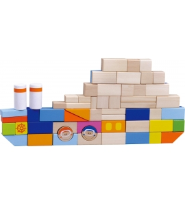 Stavba člnov z drevených kociek je skvelá zábava! Pomocou rôznych farebných stavebných prvkov môžete ľahko stavať podmorské člny aj podmorské mestá. S týmito drevenými blokmi sa dá trénovať jemná motorika!