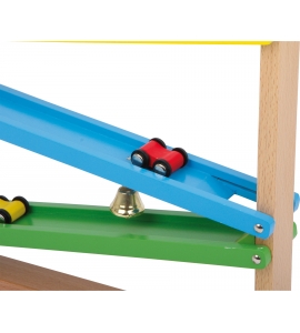 Pretekanie na 4 úrovniach, 4 autá (cca 3 x 3 x 1,5 cm) nechajú zvončeky veselo zazvoniť! Rám je vyrobený z jemného hotového bukového dreva a "nohy" zabezpečujú stabilný stojan.