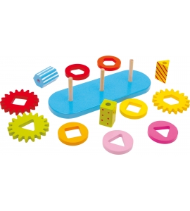 Aký skvelý herný nápad! Farebne maľované drevené prvky sú spojené ozubenými kolesami. Získajte svoje prvé nápady o mechanizmoch a pokúste sa nájsť najlepšiu kombináciu drevených prvkov, aby sa všetky kolesá otáčali pohybom len jedného z nich.